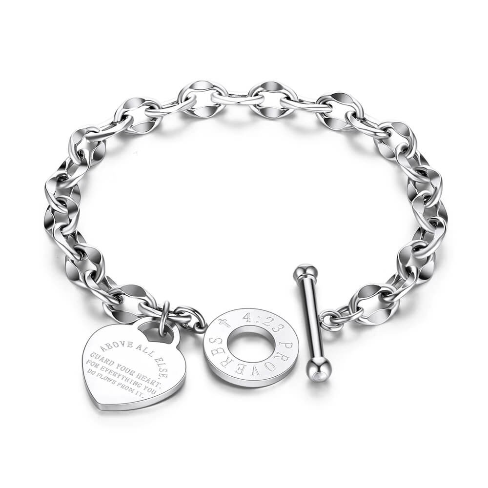 Elegáns nemesacél női karkötő. Szív medálall. Minden karkötőt ajándék díszdobozban küldünk.
