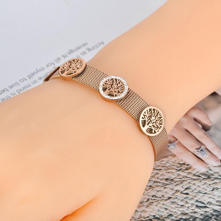 Nemesacél Mesh Női Karkötő Életfa Medállal