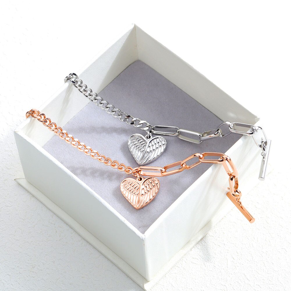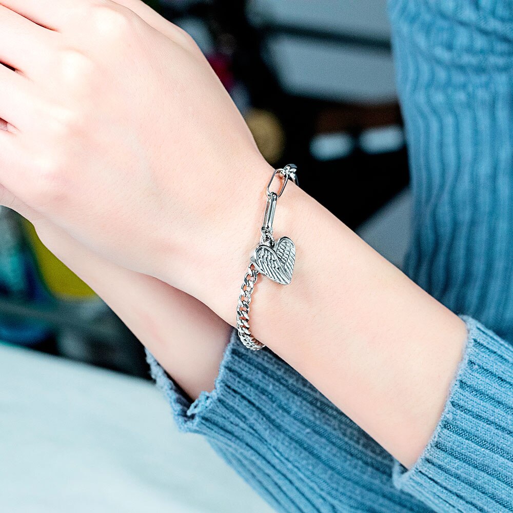 Nemesacél karkötő szív medállal. Tökéletes ajándék, fekete díszdobozban küldjük.