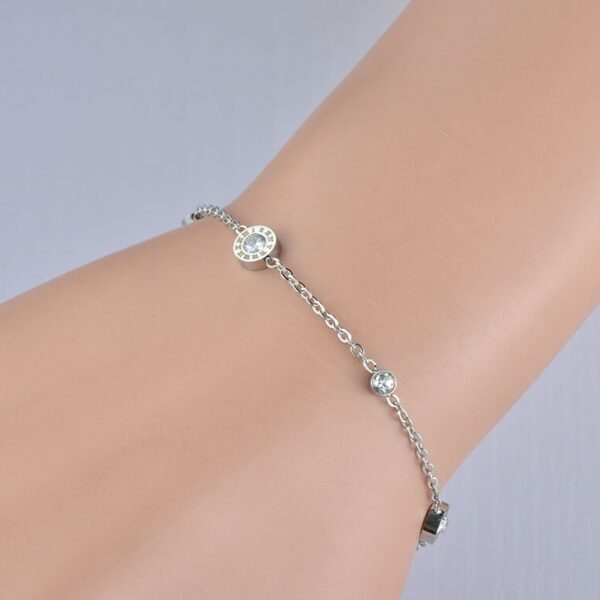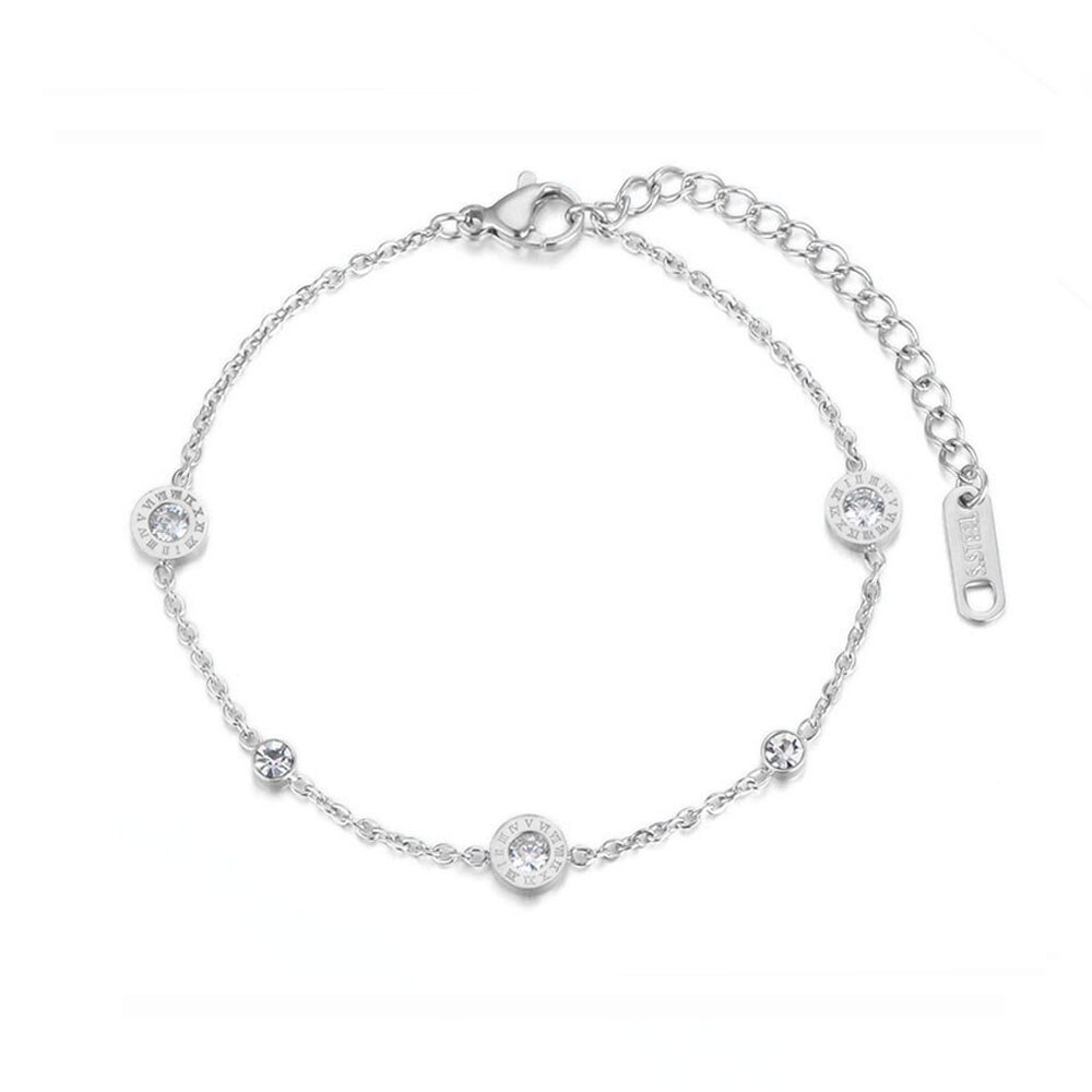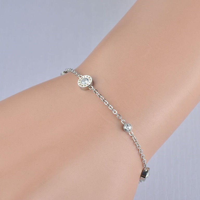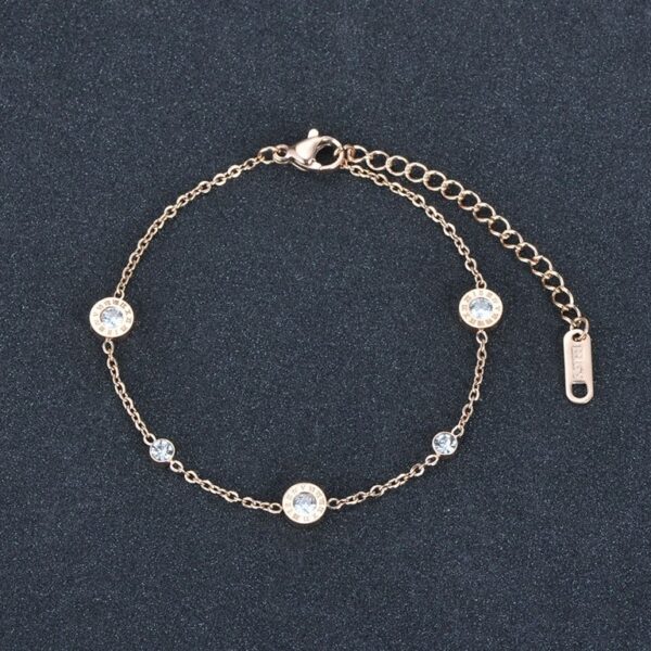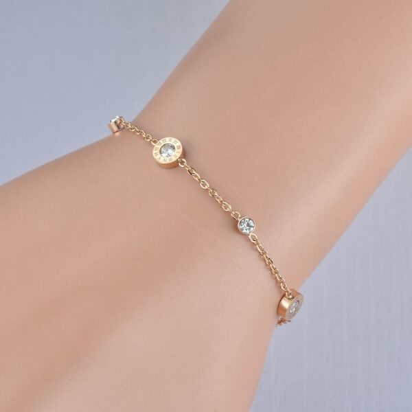 Stílusos rosegold nemesacél karkötő római számos medálokkal, cirkónia kő berakással. Tökéletes ajándék, fekete díszdobozban küldjük.