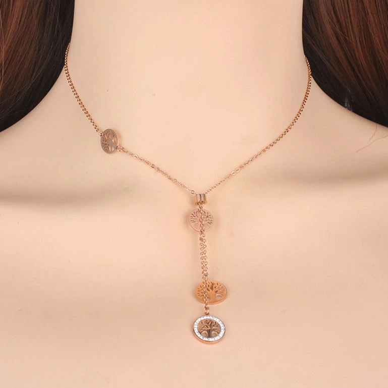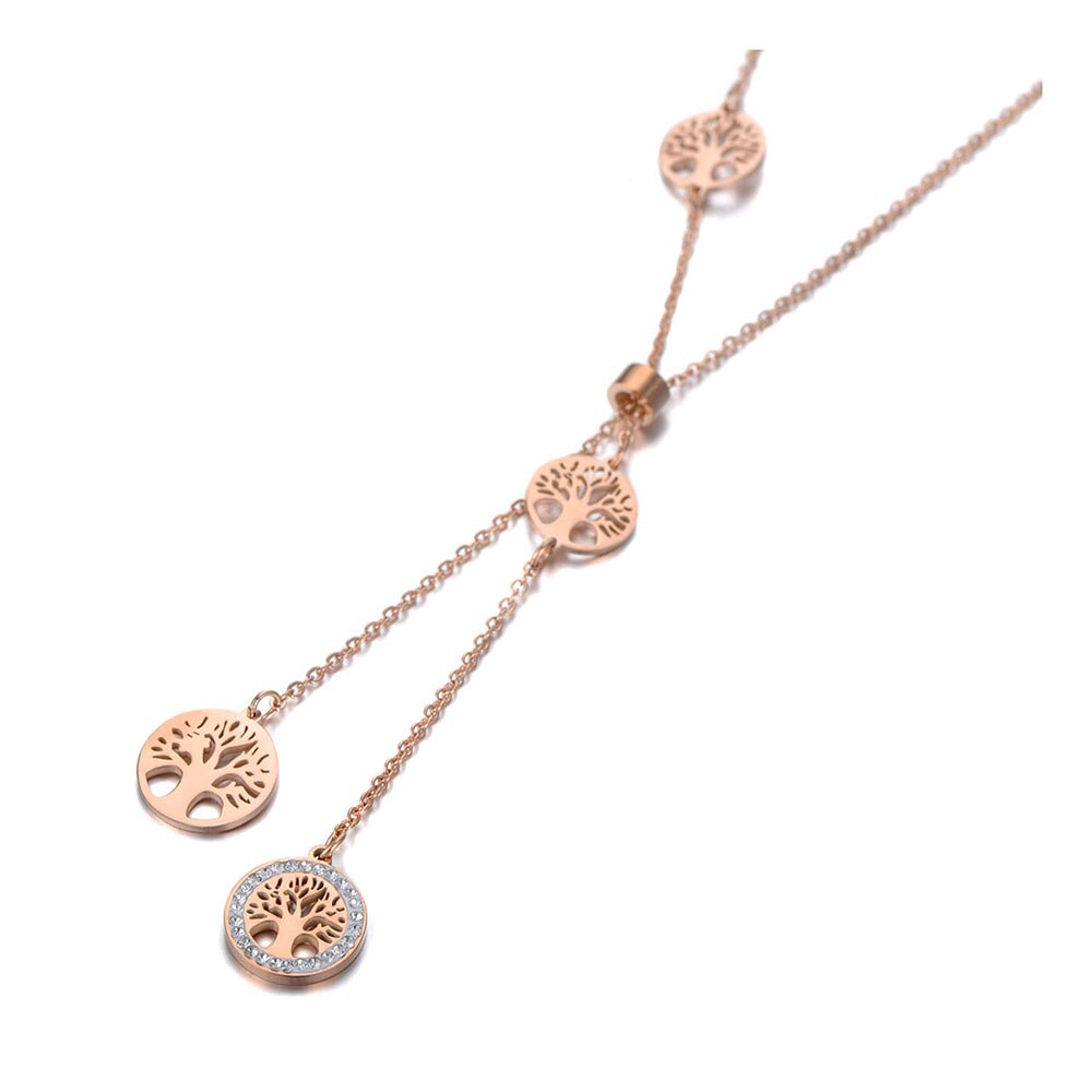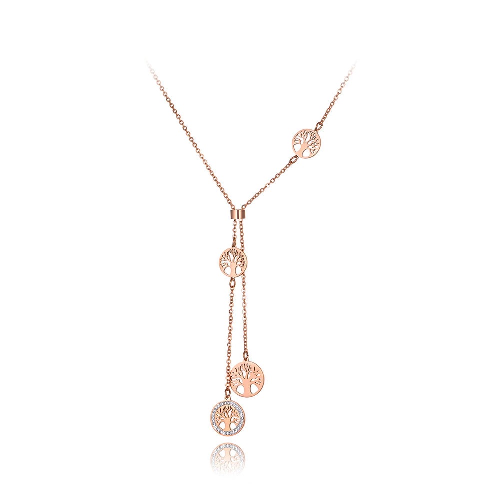 Elegáns, rosegold nemesacél női nyaklánc. Életfa medálokkal.
